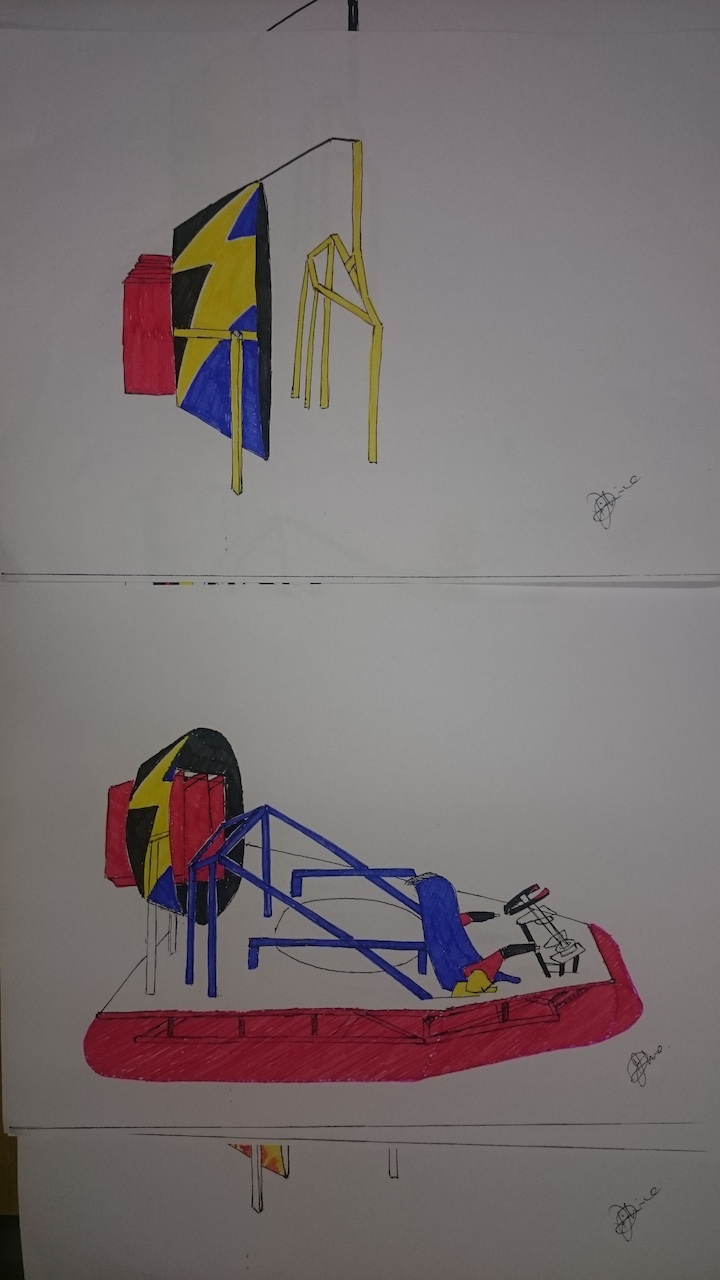 Hoverbolt 1.0 - A self-funded Pilot Driven Hovercraft project. Team Leader of a 10-member senior year Mechanical Engineering team. Developed multiple Hand-Drawn Sketches on paper before styling. Created deatiled 3D Models of all individual parts in SolidWorks as well as conducted structural analysis. Responsible for Engine Power Requirements and selection, thrust requirements and Propeller Selection and Overall Success of project. Conducted Vendor Negotiatiations and Procured Materials